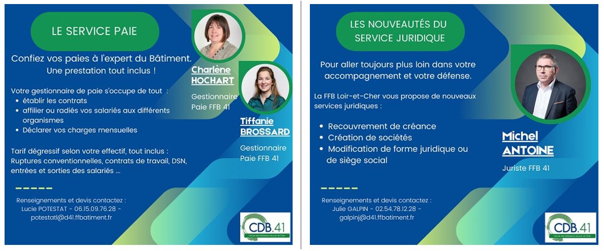La Fédération Française du Bâtiment de Loir et Cher apporte au quotidien des services individuels aux entreprises en terme de conseil, d’assistance et d’accompagnement dans les domaines du social, des prix et des marchés, de la formation, du juridique et du fiscal, du technique.