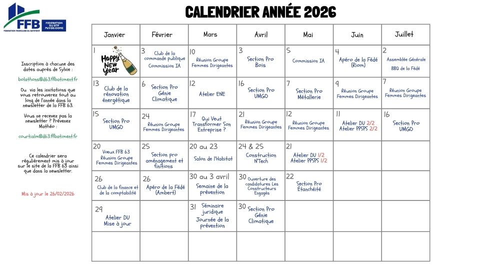 - Vous profitez des progrès générés par l'innovation et la recherche professionnelle menées par la FFB 63, et de leurs incidences sur l'activité.