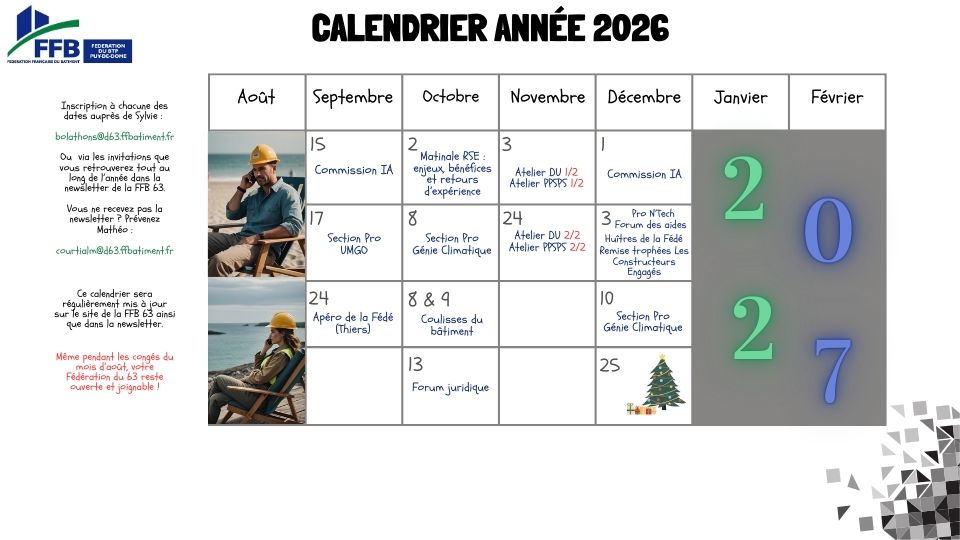 10:5903/08/2020Afin relancer l’activité après la crise sanitaire qui a touché notre pays, la Fédération Française du Bâtiment du Puy-de-Dôme a choisi de développer trois solutions à disposition de ses adhérents.