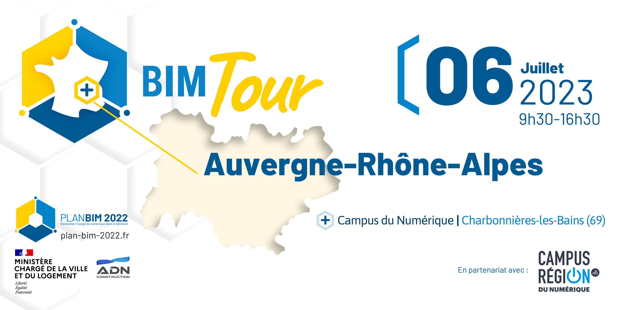 13:1321/06/2023Acteurs de la construction, venez découvrir des projets BIM à taille humaine réalisés dans votre région et rencontrer les professionnels qui les ont menés ! RDV au BIM Tour Auvergne-Rhône-Alpes, le jeudi 6 juillet 2023, sur le Campus du Numérique à Charbonnières-les-Bains (près de Lyon).