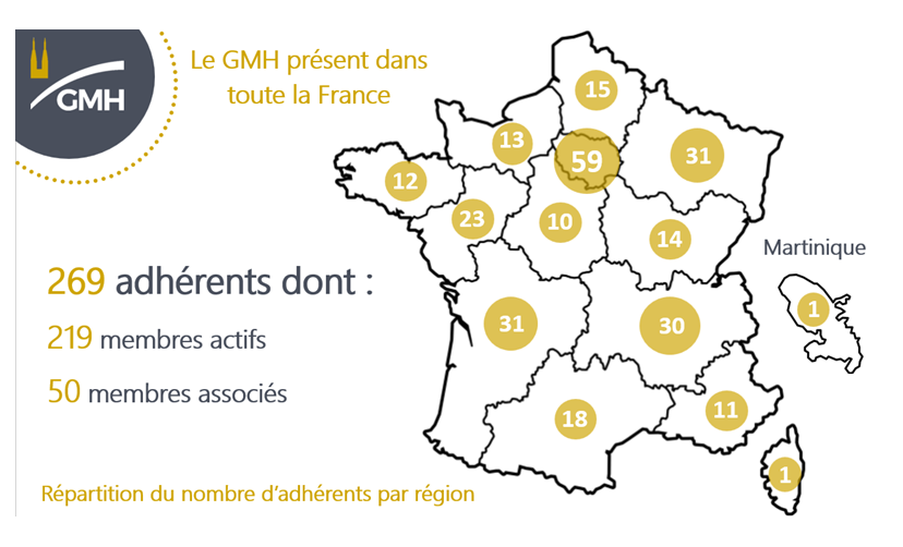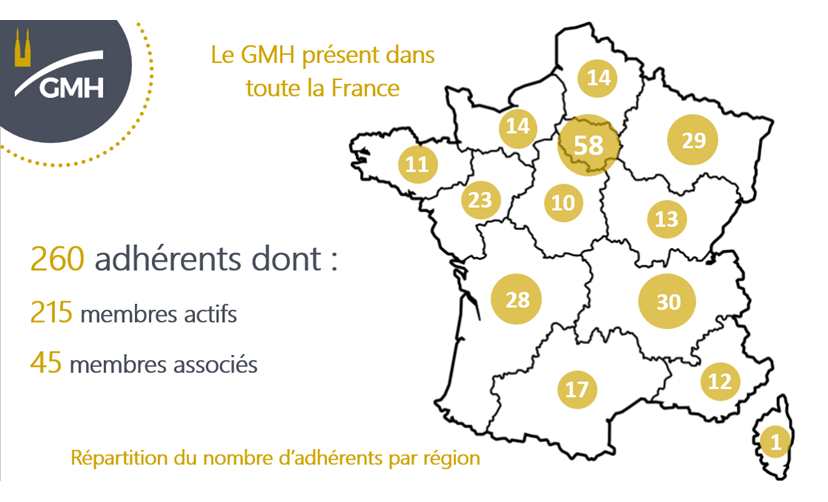 Le GMH fédère des entreprises hautement qualifiées. Ces entreprises exécutent des travaux dans le respect des techniques anciennes de construction. Les adhérents du GMH sont titulaires de la qualification Qualibat « patrimoine » ou « monuments historiques » de leur spécialité.