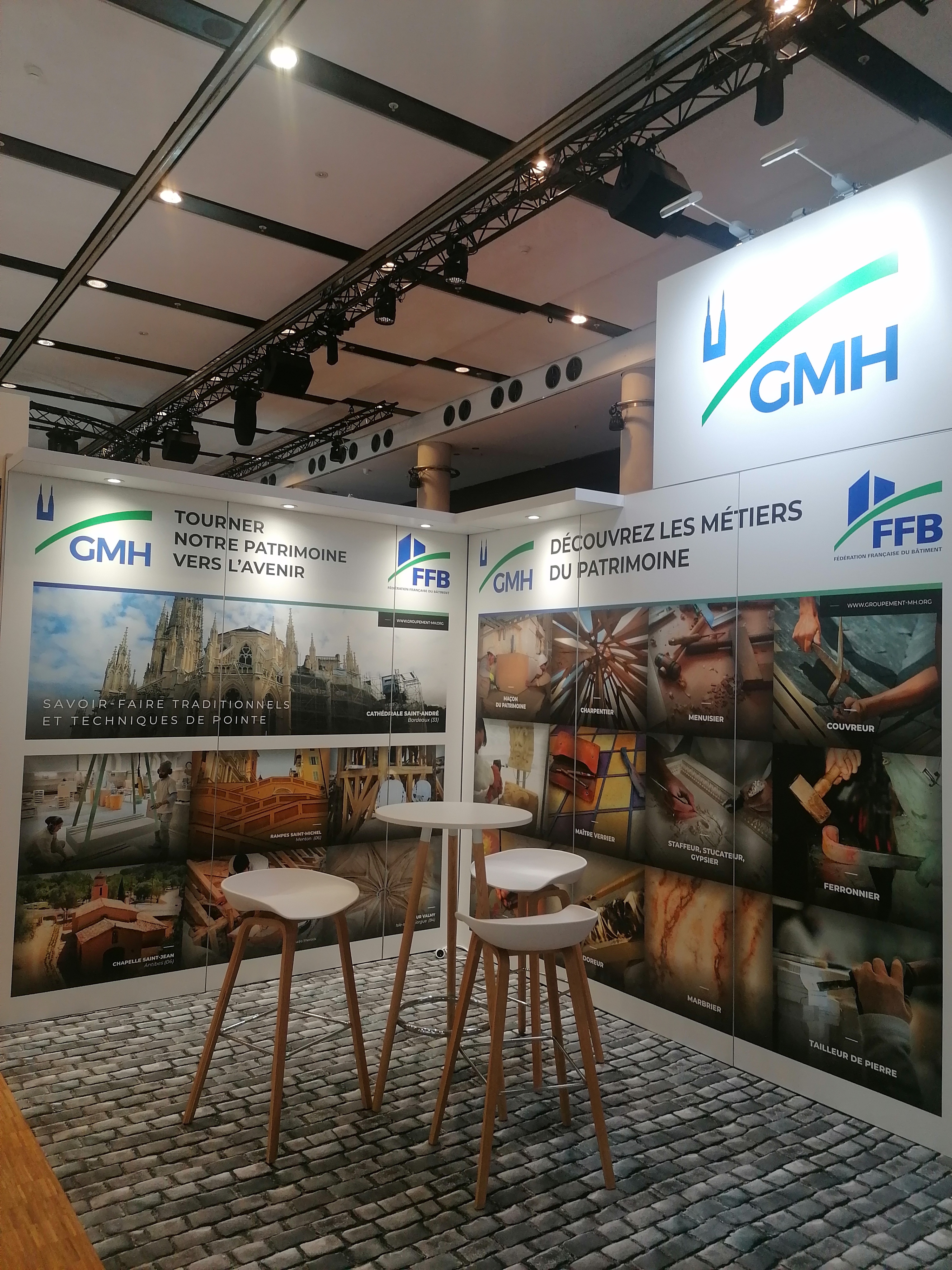 7:3120/12/2022Du 27 au 30 octobre 2022 a eu lieu le Salon International du Patrimoine Culturel au Carrousel du Louvre à Paris. Le GMH a accueilli les visiteurs de tous horizons sur un stand spacieux, décoré aux couleurs de la FFB et du GMH, avec de nombreuses photos de restaurations prises dans toutes les régions de France.