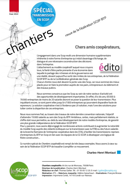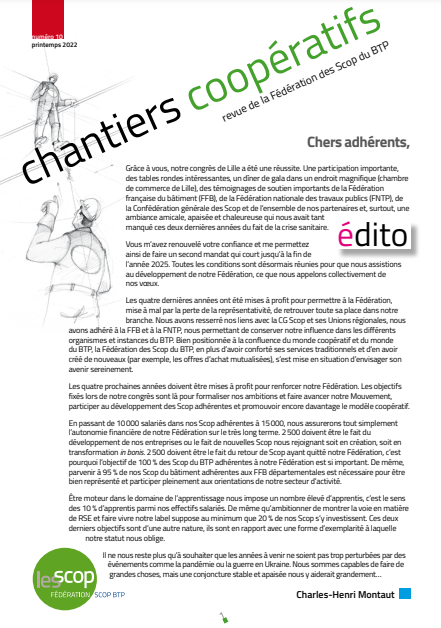 15:5023/05/2023Chantiers Coopératifs est le magazine de la Fédération SCOP BTP. Vous y retrouverez toute l’information sur la vie de la Fédération SCOP BTP et des reportages thématiques sur les Coopératives BTP.