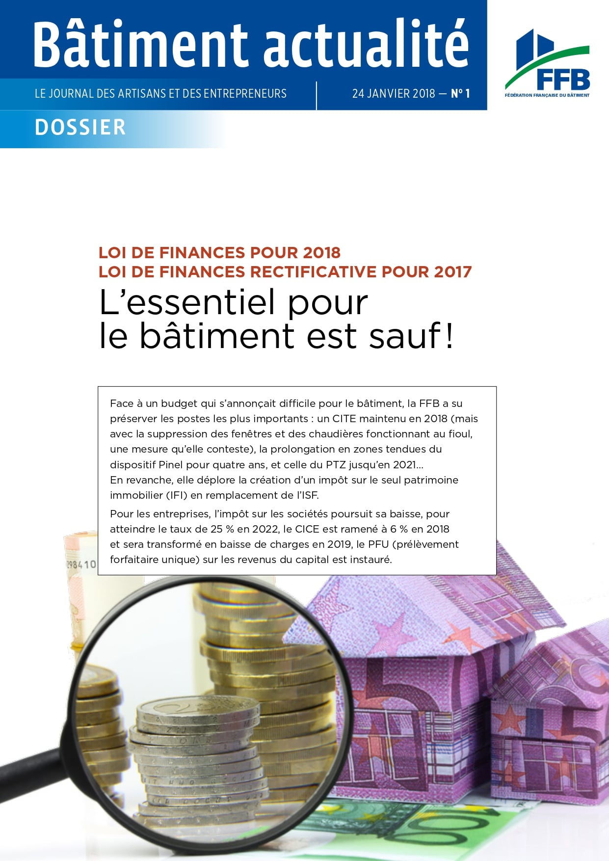 Loi de finances pour 2018 et loi de finances rectificative pour 2017 : l'essentiel pour le bâtiment est sauf !