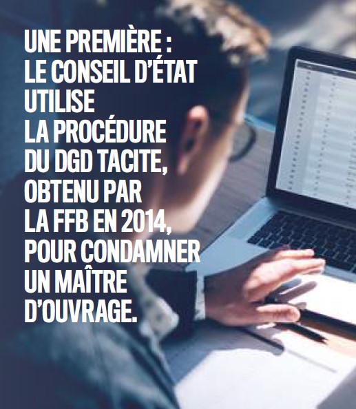 FFB Nationale11:0010/04/2019La FFB a longtemps oeuvré en faveur d'une mesure forte pour améliorer la trésorerie des entreprises : l'établissement du décompte général et définitif (DGD)de manière tacite. En 2014, elle a obtenu pour les marchés publics ce qu'elle avait fait inscrire pour les marchés privés dans la norme NF P03-001 de décembre 2000 : une procédure permettant aux entreprises d'obtenir un DGD tacite. Aujourd'hui, le Conseil d'État vient d'en faire application à un adhérent de la FFB de Saint-Pierre-et-Miquelon.