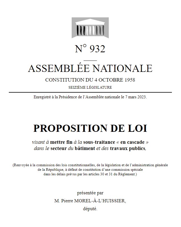 Sensibilisés par la FFB, les députés demandent la fin de la sous-traitance en cascade dans le BTP