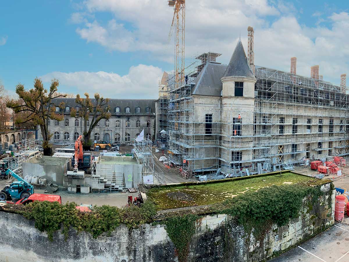 15:2301/03/2021Lancé début 2021, le vaste chantier de restauration du château royal de Villers- Cotterêts (Aisne) met à contribution les savoir-faire des entreprises spécialisées dans le patrimoine et leur capacité à se mobiliser pour répondre aux exigences d’un calendrier contraint. Objectif : l’ouverture de la Cité internationale de la langue française en mars 2022.