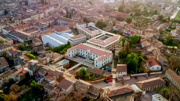 Attributaire du projet en entreprise générale, Eiffage Construction a conjugué de nombreux savoir-faire menés de front : le désamiantage et la démolition partielle de l’ancienne gendarmerie, avec conservation de sa façade patrimoniale, étayée par des butons ; la reconstruction du bâtiment, agrafé sur la façade existante, en béton coulé en place ; la création d’un niveau de rez-de-jardin en sous-œuvre sous l’ancienne gendarmerie et sous un autre petit bâtiment classé, le pigeonnier ; le terrassement et la réalisation d’une paroi berlinoise pour assurer les fondations des nouveaux bâtiments ; la construction neuve de deux bâtiments en utilisant 3 000 m2 de prémurs matricés, et la création d’un bassin de rétention sous l’un d’entre eux.