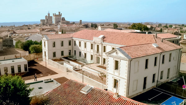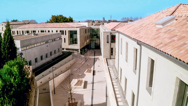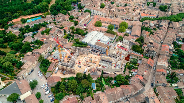 Pour gérer l’importante coactivité, l’entreprise générale s’est employée à mettre en place une organisation de chantier d’une grande rigueur : « Étant donné l’enclavement du projet, l’accès unique et limité au chantier, et le peu d’espace de stockage disponible, toutes les livraisons et l’utilisation des deux grues ont été planifiées selon des horaires très stricts, en maîtrisant les nuisances et en tenant compte des flux des élèves », explique Rémi Gerbal, directeur de travaux principal chez Eiffage Construction Languedoc. L’esprit des antiques occupants règne encore sur les lieux, comme le montre la mosaïque romaine presque intacte exhumée pendant la phase archéologique. Inauguré le 31 mars 2021 à l’issue de vingt-quatre mois de travaux, le nouvel ensemble est parfaitement intégré à la vieille ville, grâce à ses façades teintées en pierre d’Uzès, visées par les Architectes des bâtiments de France. Un tour de force qui méritait bien un prix régional au concours des Clés d’or de l’entreprise générale d’EGF 2021.