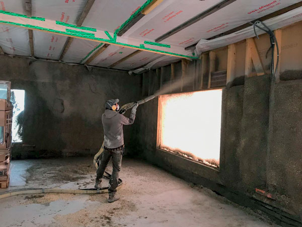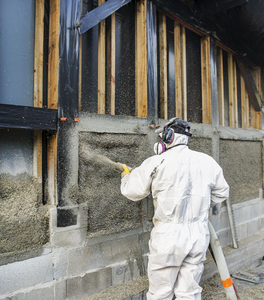 Grâce à ses propriétés de régulateur hygrothermique, le mélange chaux-chanvre projeté à l’intérieur des murs apparaît comme un procédé très intéressant pour améliorer le confort du bâti ancien. Jean-Jacques Etcheberry, dirigeant de l’entreprise de maçonnerie traditionnelle, plâtrerie et ravalement Etxe Berri, implantée à Ordiarp (Pyrénées-Atlantiques), a été l’un des premiers du département à devenir RGE et à se spécialiser dans la rénovation énergétique des maisons anciennes ; il comptabilise une quarantaine de projets réalisés en chanvre depuis une dizaine d’années. « Ce matériau biosourcé régule l’hygrométrie et améliore le confort à l’intérieur de la maison, puisqu’une température de 17 °C avec un air bien sec crée un ressenti de 20 °C, explique-t-il. Il est aussi un facteur d’économies d’énergie, puisqu’il permet de chauffer moins en hiver, et d’avoir moins recours à la climatisation en été. » Pour améliorer son expertise sur le matériau, le chef d’entreprise est entré en contact avec l’association Construire en chanvre et a formé ses équipes à l’utilisation des machines de projection, qui permettent de réaliser une isolation variable de 6 à 12 cm, en fonction de l’isolation souhaitée, recouverte d’un enduit de chaux-chanvre pour conserver le déphasage naturel du bâti traditionnel. Le savoir-faire de l’entreprise s’étend aussi au remplissage par projection des murs à ossature bois avec du béton de chanvre. « Dans le mélange chaux-chanvre, nous travaillons à remplacer la chaux par de la terre, un autre matériau biosourcé et perspirant pour à la fois optimiser les propriétés hygrométriques du chanvre et mieux répondre aux exigences de la RE 2020 », ajoute le chef d’entreprise.