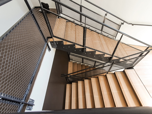 Cela se traduit en premier lieu par une optimisation des surfaces disponibles, en toiture et en sous-sol, pour contribuer à la densité urbaine et lutter contre l’artificialisation des sols : « En plus des escaliers métalliques intérieurs et extérieurs, notre lot comportait la réalisation de garde-corps pour le rooftop, et d’une pergola destinée à créer un espace végétalisé en toiture », explique Sylvain Tabillon, dirigeant de l’entreprise de métallerie Pillet, une TPE de cinq salariés implantée à Riorges (Loire), qui a pris en charge ces ouvrages.