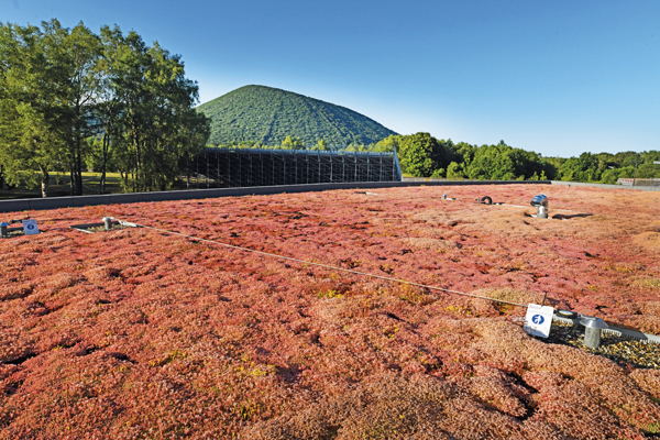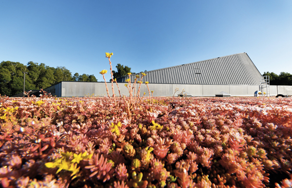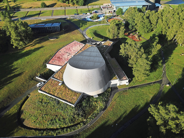 Cette volonté d’harmoniser le bâti avec la nature se traduit tout autant par ses quelque 1 300 m2 de toitures-terrasses végétalisées, autour de la lentille métallique, un ouvrage qui a été confié à une société experte en étanchéité, Soprema Entreprises.