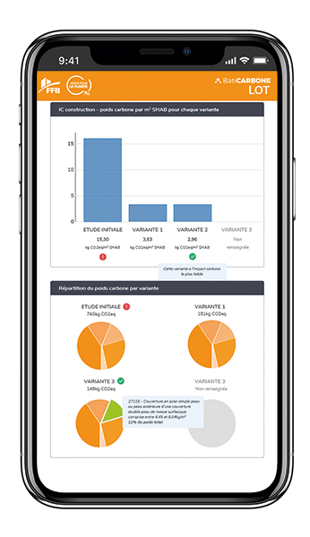 FFB Nationale8:0320/06/2024Contraintes de respecter les nouvelles exigences de la RE 2020, les entreprises de travaux qui répondent à un appel d’offres éprouvent de plus en plus de difficultés à faire accepter des variantes techniques et/ou économiques. C’est pourquoi, en 2024, l’outil BatiCarbone se dote d’un nouveau module facilitant le calcul de l’empreinte environnementale d’un lot à l’échelle d’un bâtiment.