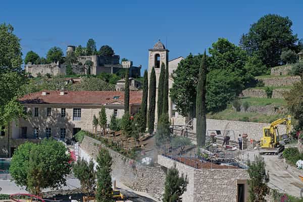 Pour rester fidèle à l’identité du lieu, les matériaux utilisés en rénovation, comme la pierre blonde de Verfeuil ou la pierre d’Apt, sont originaires de Provence, de même que le millier de végétaux qui ont été plantés, tous d’origine méditerranéenne