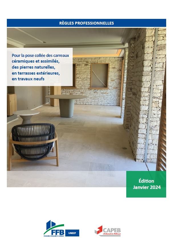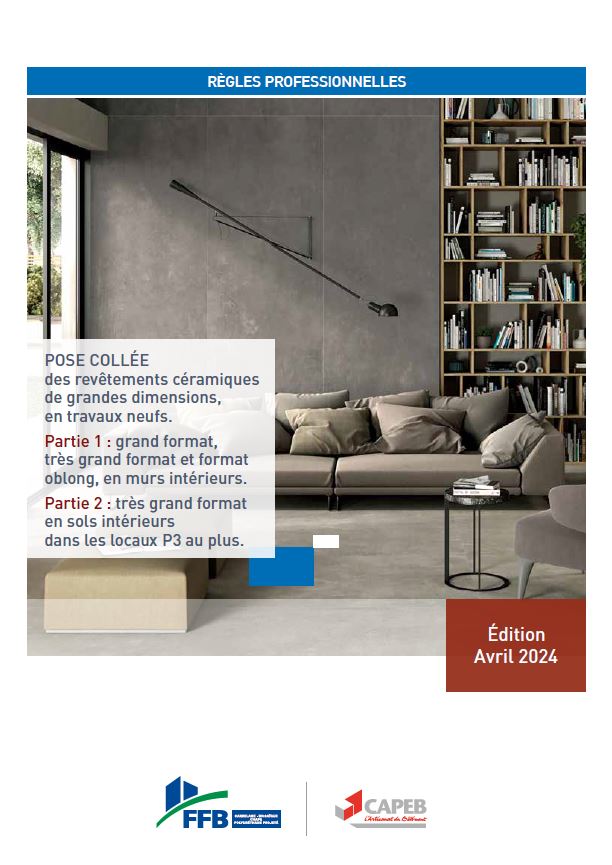 7:1427/06/2024L'UNECP-FFB met à votre disposition les Règles Professionnelles "Pose collée des revêtements céramiques de grandes dimensions, en travaux neufs" - Édition Avril 2024. -