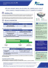 Cette Fiche Pratique FP1 "Délais avant la mise en œuvre de carrelage collé sur chapes traditionnelles et chapes fluides" est à votre disposition ici.