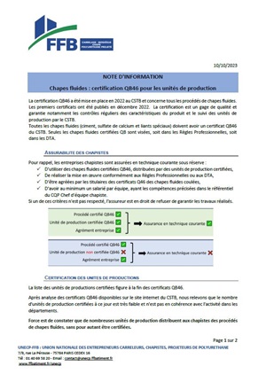 L'UNECP-FFB met à votre disposition une note d'information portant sur les unités de production certifiées QB46 pour la production des chapes fluides.