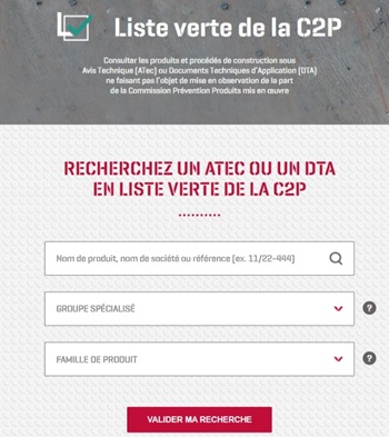 A noter que cette liste est mise à jour régulièrement car la validité des ATec et DTA évolue dans le temps. Il s’agit de la référence en la matière, car un procédé peut faire à la fois partie d'une famille de procédés mise en observation et être en Liste verte.