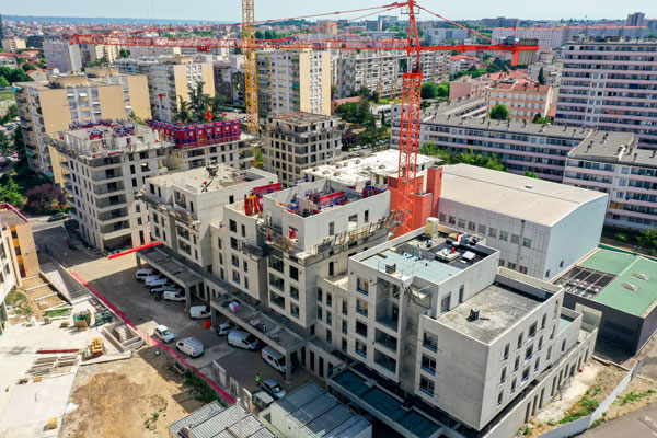 Après l’achèvement du gros œuvre des trois premiers bâtiments, et après avoir construit la moitié des trois suivants, le choix du béton bas carbone se révèle tout à fait satisfaisant :