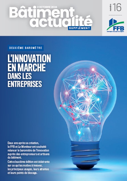 FFB Nationale9:1130/09/2024Deux ans après sa création, la FFB et Le Moniteur ont souhaité relancer le baromètre de l’innovation auprès des entrepreneurs et artisans du bâtiment. Cette deuxième édition est éclairante sur ce qui les motive à innover, les principaux usages, leurs attentes et leurs points de blocage.